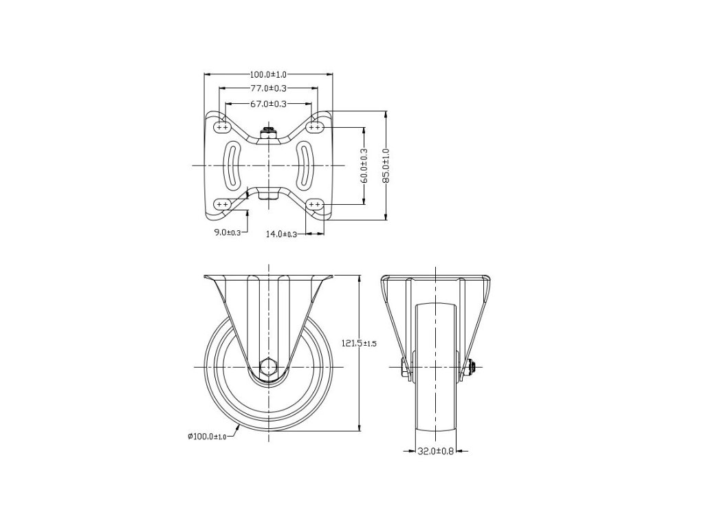 Ø 100 mm | Kolečko pevné bez brzdy: polyamid, montážní deska, válečkové ložisko, nosnost 160 kg | 4062-100